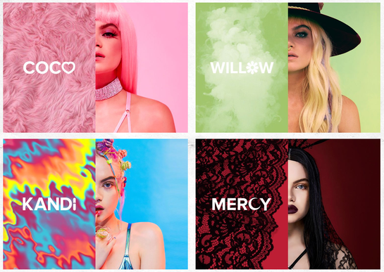 Dolls Kill tells women they can be whoever they want to be, no questions asked. This attitude is reflected in six personas, or “dolls,” that appear on the website, each expressing an archetypal personality, from free-spirited Willow to psychedelic temptress Kandi.