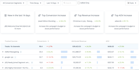 Not only will you be able to see all the data related to conversions, revenues, and average order values across every one of your channels (and each campaign within those channels), but we also deduplicate them. In other words, if a customer sees an ad from multiple channels (e.g., Facebook or Instagram) and then converts, each platform will just take credit for that conversion because they’re operating in a silo from your entire customer journey. With AdRoll’s Cross-Channel Performance Dashboard, however, the data from every platform is connected, so you’ll be able to see precisely where attribution credit goes once you select which attribution model to use. It’s a lot more precise than pulling data manually from each individual marketing platform.